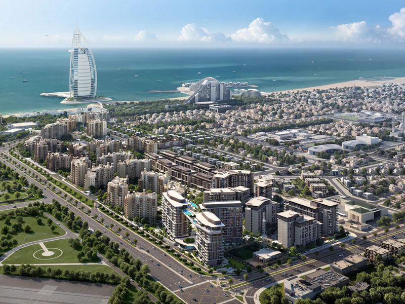 احاطهشده توسط نمادهای شاخصی چون Jumeirah Burj Al Arab، Marsa Al Arab و Jumeirah Beach Hotel